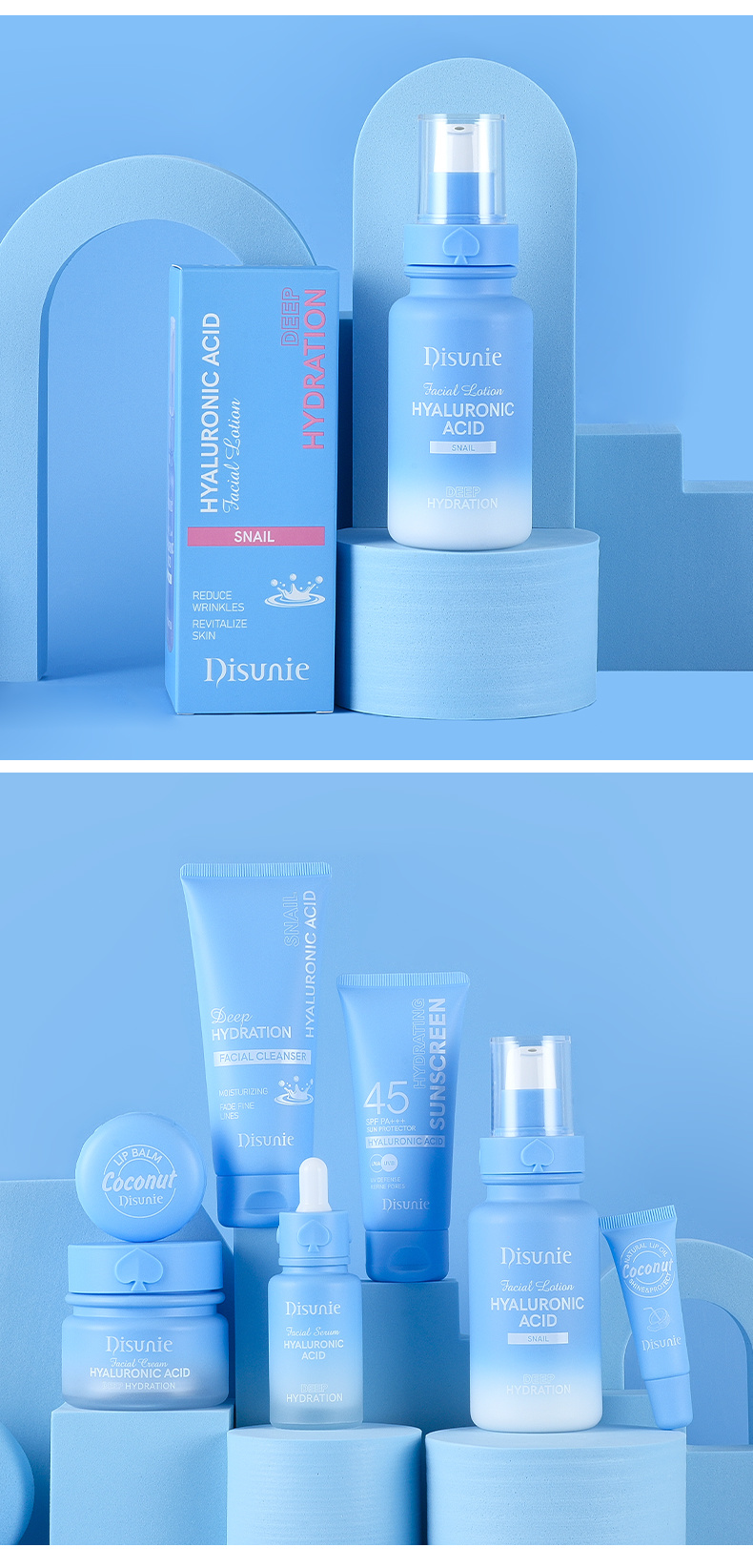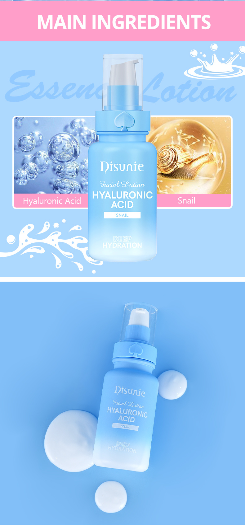 Disunie's Hyaluronic Acid & Snail Mucin Facial Lotion is a lightweight daily moisturizer that delivers deep hydration and supports skin repair. Hyaluronic Acid draws moisture into the skin to keep it plump, soft, and refreshed, while Snail Mucin provides proteins, peptides, and natural nutrients that help improve elasticity, fade blemish marks, and smooth texture.
