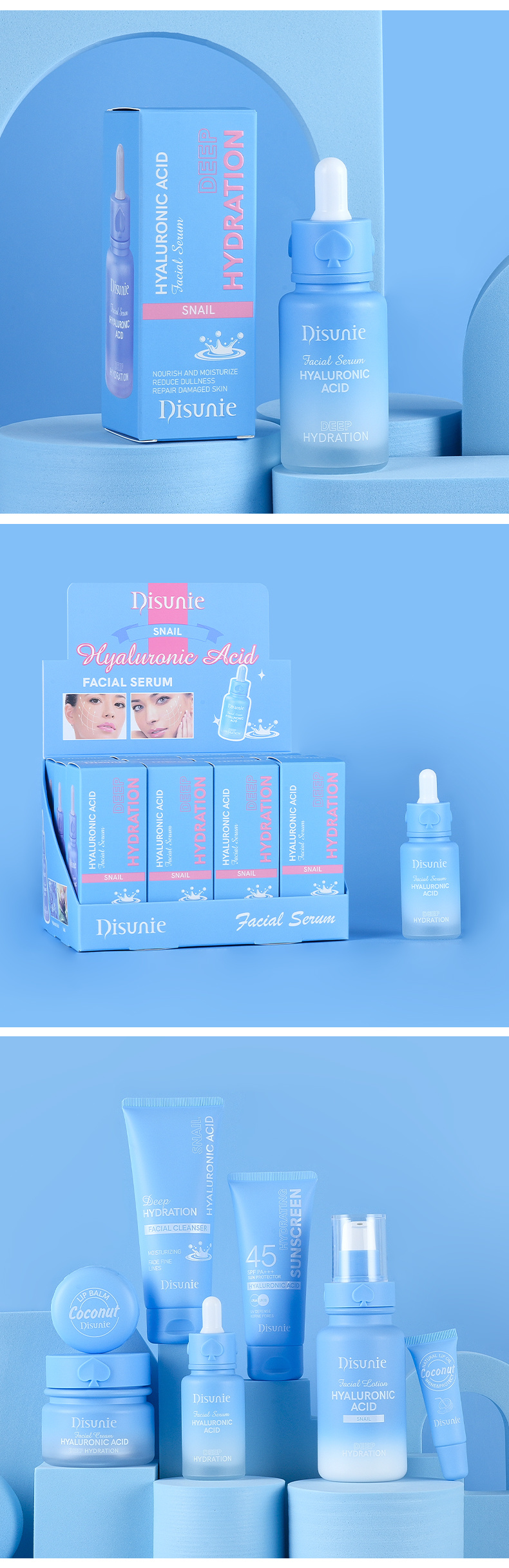 Disunie's Hyaluronic Acid & Snail Mucin Facial Serum is a deeply hydrating and skin-repairing formula crafted to replenish moisture, smooth texture, and restore radiance. Hyaluronic Acid delivers multi-layer hydration, plumping the skin for a soft and supple feel. Snail Mucin, rich in proteins and nutrients, supports skin repair, improves elasticity, and helps fade scars and fine lines.