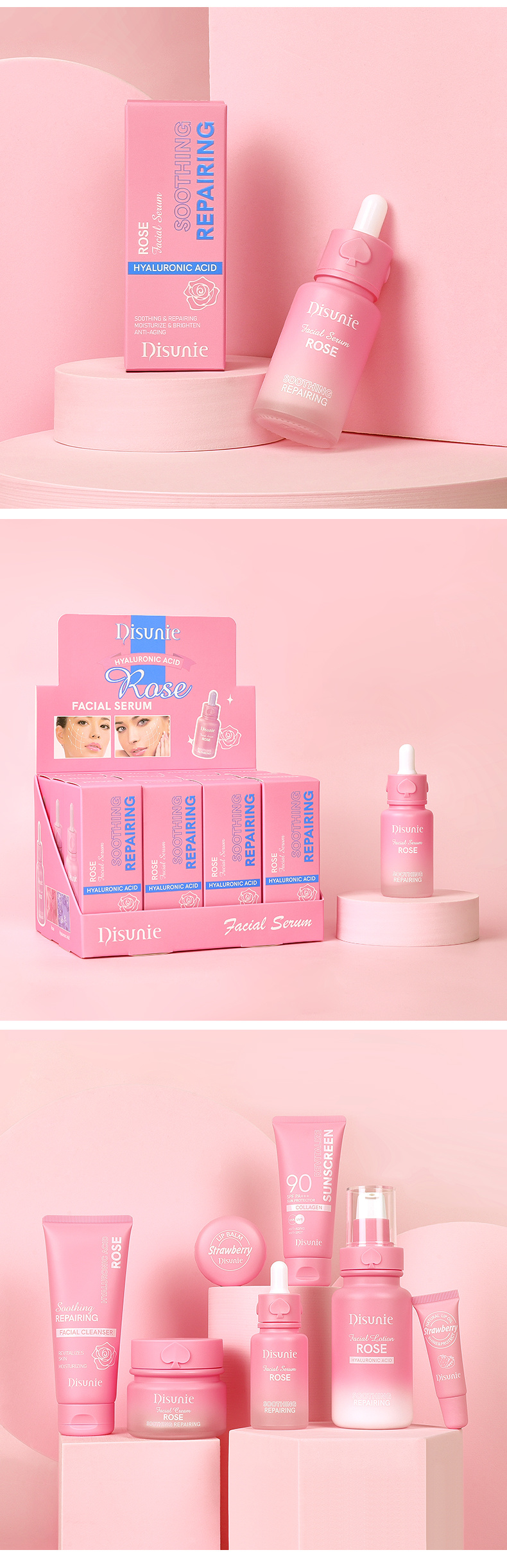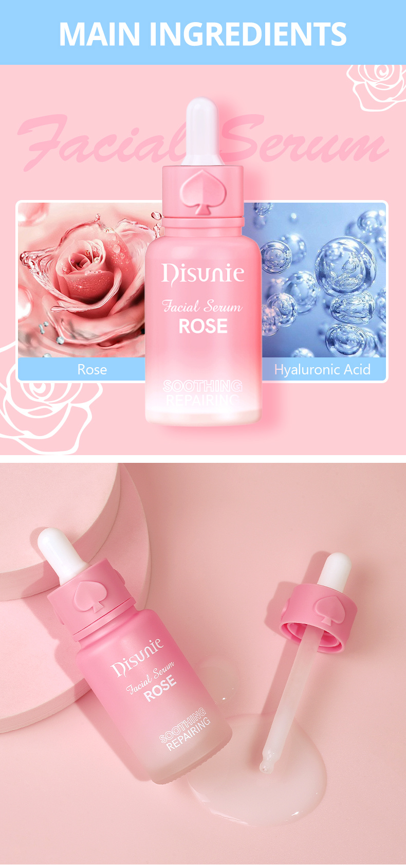 Indulge your skin in luxurious hydration with Disunie's Rose & Hyaluronic Acid Facial Serum, a lightweight yet deeply nourishing formula that replenishes moisture, soothes sensitivity, and enhances your skin’s natural radiance. Infused with Rose Extract to calm and refresh the skin and Hyaluronic Acid to deliver lasting hydration, this serum leaves the complexion soft, plump, and delicately luminous.